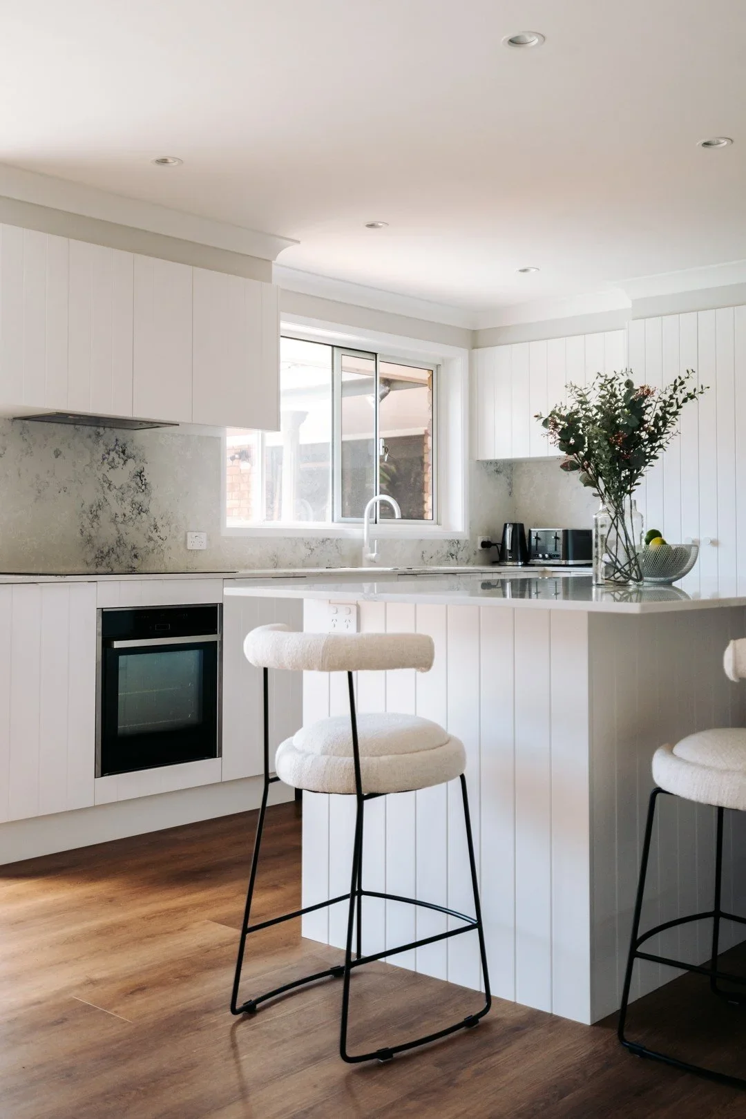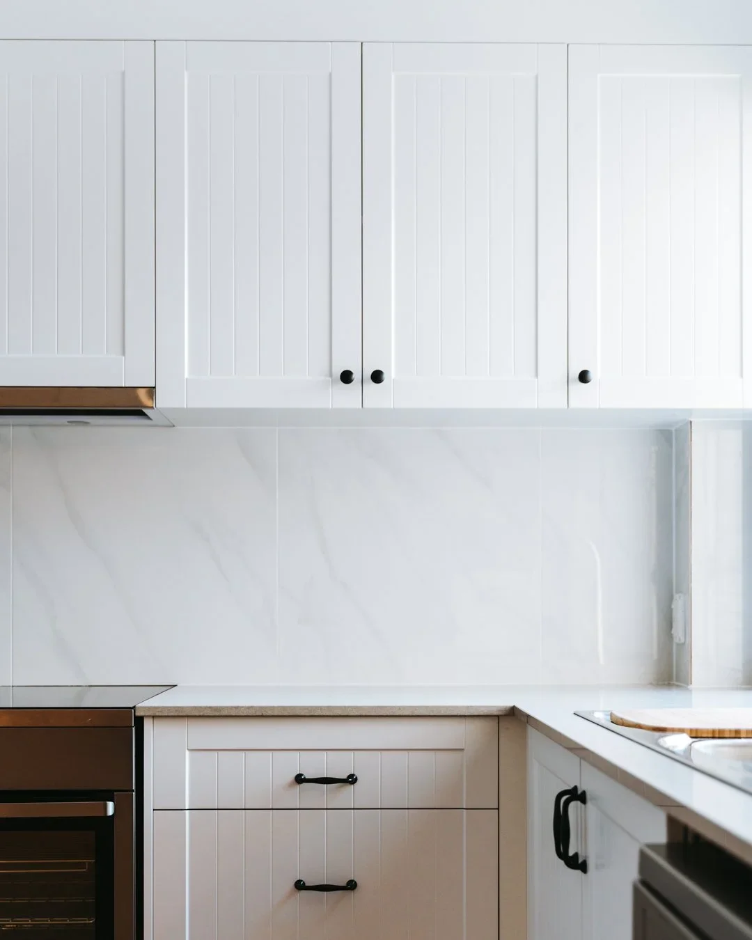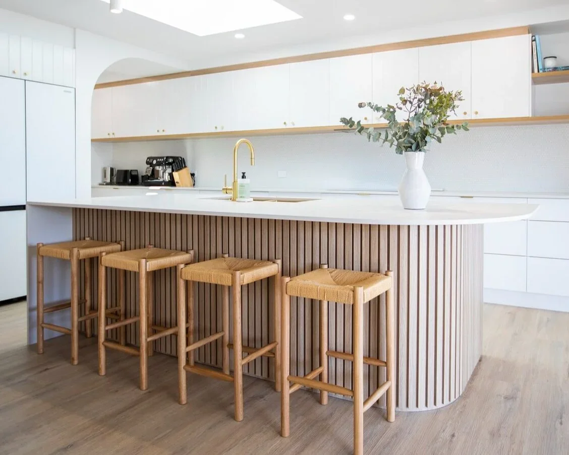 “VJ” stands for vertical joint, so these panels get the most out of your kitchen if you want to add an element of texture without it being distracting. They are much the same as tongue and groove panelling, where the timber or MDF panels are equally spaced. Usually, with the sheets we use, the grooves are cut into them. We often see this type of cabinetry used in coastal-style homes, as they give that fresh and homely feel to any kitchen.