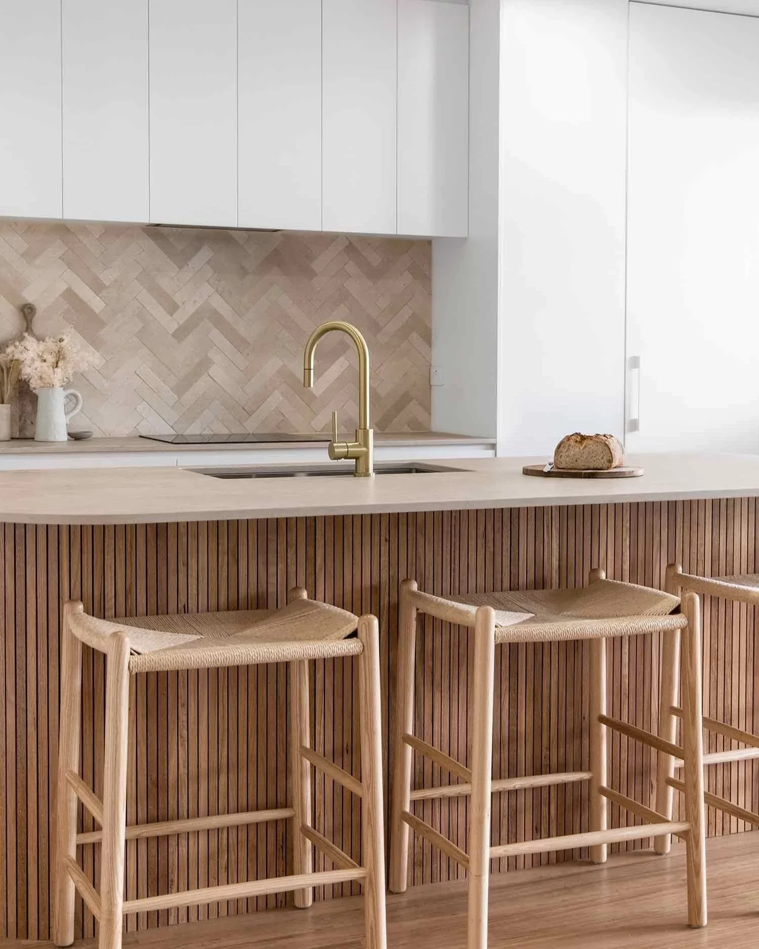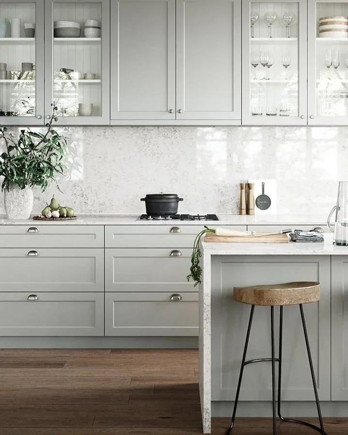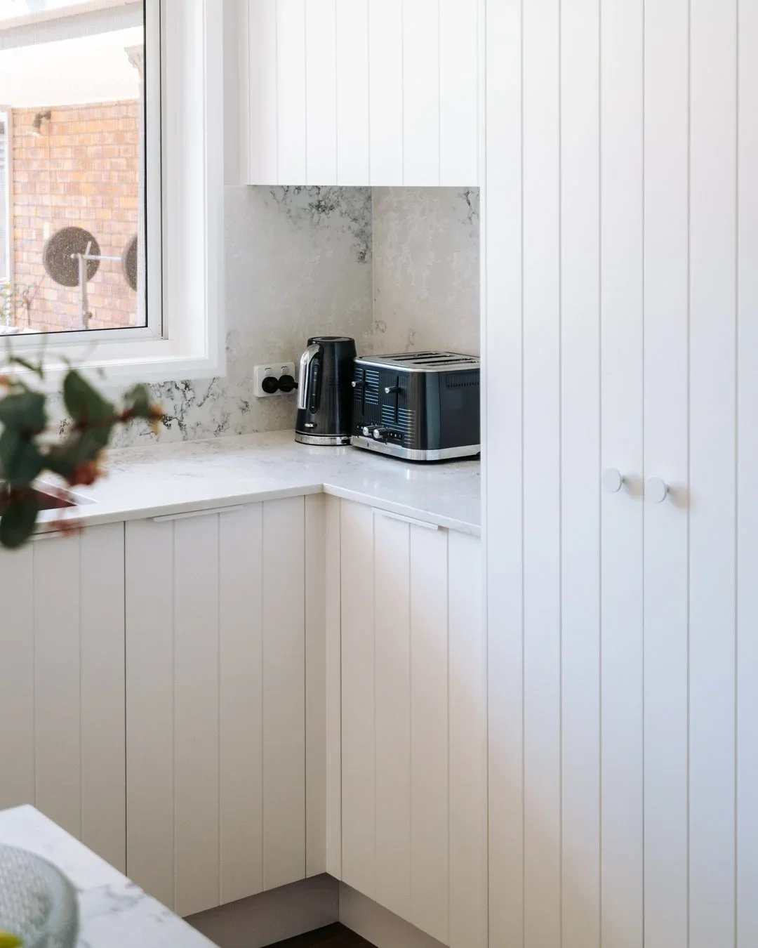 “VJ” stands for vertical joint, so these panels get the most out of your kitchen if you want to add an element of texture without it being distracting. They are much the same as tongue and groove panelling, where the timber or MDF panels are equally spaced. Usually, with the sheets we use, the grooves are cut into them. We often see this type of cabinetry used in coastal-style homes, as they give that fresh and homely feel to any kitchen.