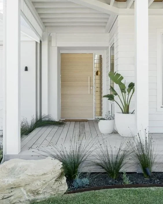 5. Add some beachy touches: Beachy elements like coastal wall art or driftwood are perfect for adding a touch of the sea to your home. Or how about opting for a feature front door in a pastel-coloured finish or, if you prefer neutrals, we recommend a light timber front door.