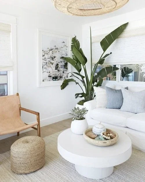 6. Incorporate natural fibres: Woven baskets, jute rugs, and sisal mats are all great ways to bring in some coastal texture. Or you could consider some rattan, brushed brass or light timber furniture to get the look. We’ve seen some great barstools, side tables, door handles and pendant lighting that will lift your look to that island feel. You could also add some palm trees for that lush, coastal look.